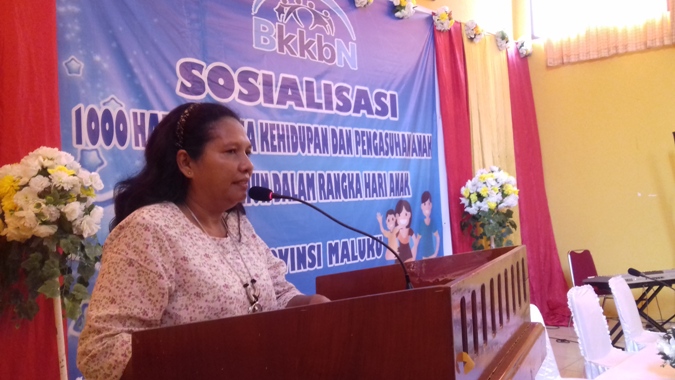 Sementara itu, ketua panitia sosialisasi, Dina Sabandar, S.Sos melaporkan, tujuan dilaksanakannya sosialisasi ini adalah: memberikan informasi dan pemahaman tetang pengasuhan 1000 Hari Pertama Kehidupan (HPK) dan Pengasuhan anak usia 6 sampai 10 tahun, kepada kader BKB di Kota Ambon.